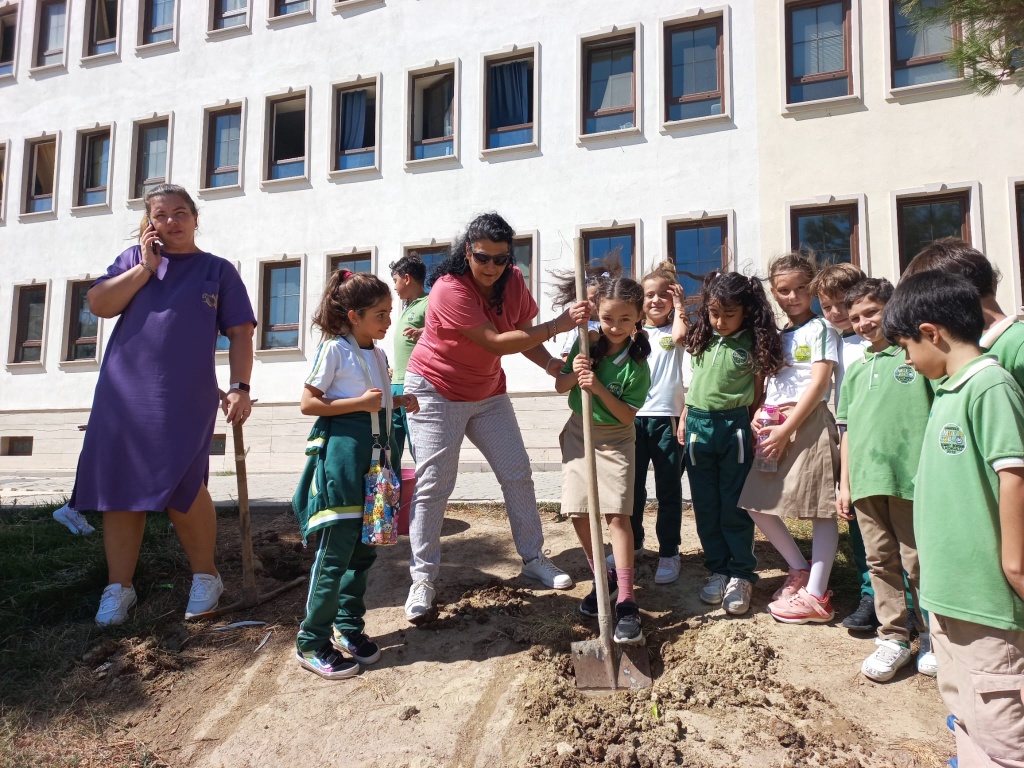 · Doğayı canlandırmak için okul bahçesinde fidan dikimi faaliyeti, öğrencilerin katılımı ile yapıldı.